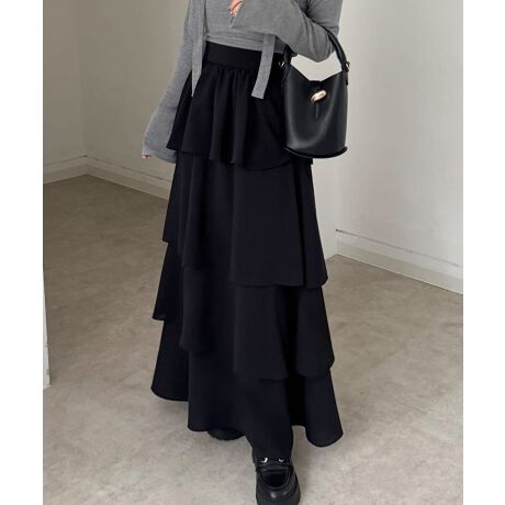 【薄くて軽いジョーゼット生地】ハイウエストティアードスカート
