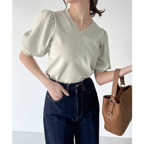 グリッターパフスリーブニット