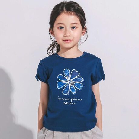 大きなお花のプリントがかわいらしい半袖Tシャツ。