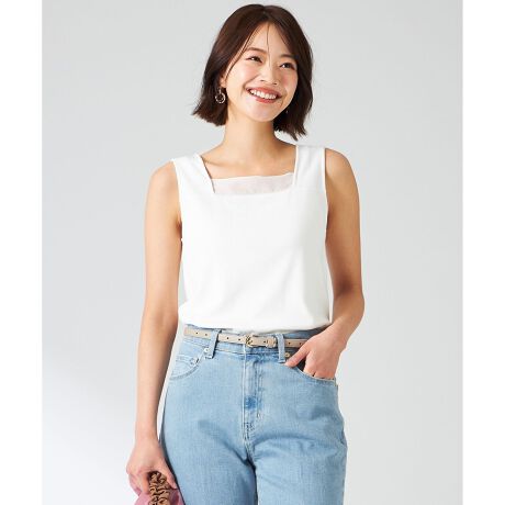 【洗える】シアーコンビスクエアネック タンクトップ