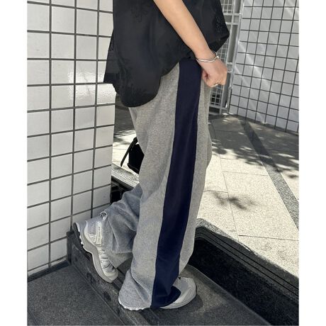 着心地の良いパイル地の素材で配色のラインがアクセントになっているリラックス感のあるイージーパンツです。