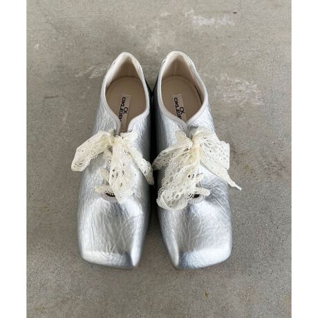 ・レースを靴紐代わりにしたバレエコアにピッタリなフラットシューズ。