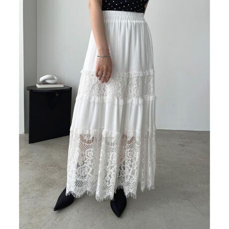 レースとの組み合わせで素材感のアクセントがプラスされ