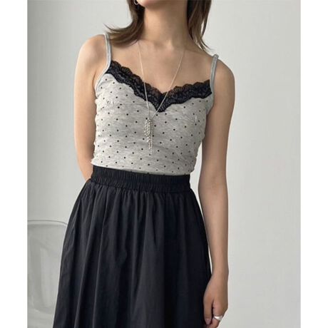 バスト上のレースで色味にも素材感にもメリハリをプラスしています。