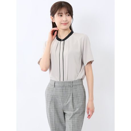 バンドカラーパイピング 半袖比翼ブラウス