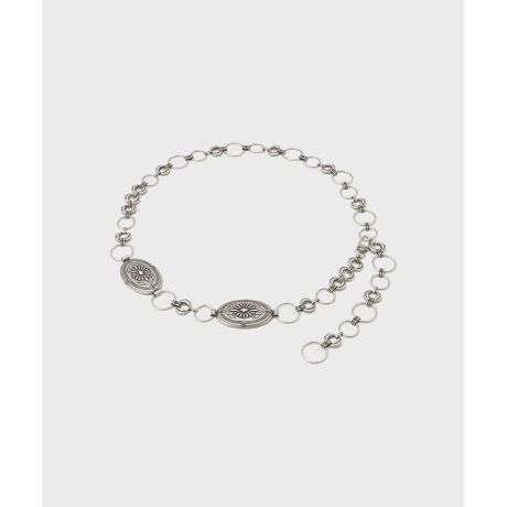 オリジナルで型から作ったコンチョパーツを使用したベルト。ヴィンテージ感のあるアンティークシルバーのカラーで作成いたしました。