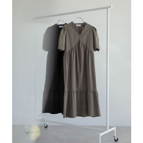 ■ESCAR 刺繍スリーブギャザーワンピース