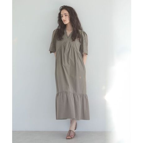 ■ESCAR 刺繍スリーブギャザーワンピース