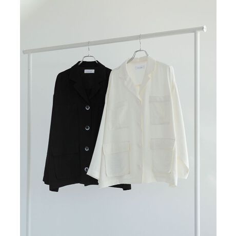 落ち感のあるリネンライクな優しいテキスタイルで仕立たデザインジャケット。ラフなオーバーシルエットでワークテイストなアウトポケットを配したトレンド感あるお作りです。薄手でさらっと羽織れる軽やかさも嬉しいポイント。程よくきちんと感もありつつ、カジュアルなニュアンスともマッチする汎用性の高いアイテムです。透け感[ややあり]