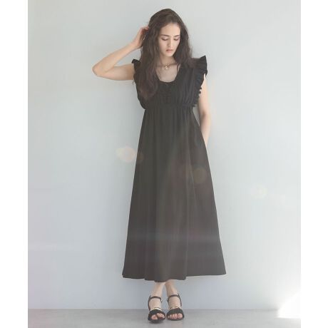 たっぷり施したフリルギャザーがポイントのデザインワンピース。トップ部分をVカットですっきりと仕上げたスリーブレスのフェミニンなお作りです。ハイウエストで切り替えた落ち感あるドレープフレアでメリハリのあるシルエットに。インナー次第で印象を変え、様々なシーンで合わせていただける使い勝手の良いアイテムです。透け感[ややあり]