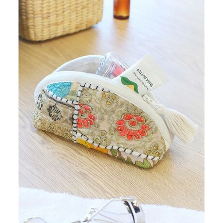 風合いある古布が大人可愛いカンバディア半円ポーチ