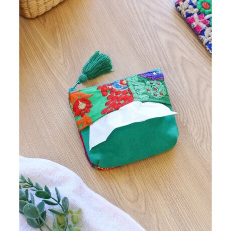 風合いある古布が大人可愛いカンバディアパッチティッシュケースポーチ
