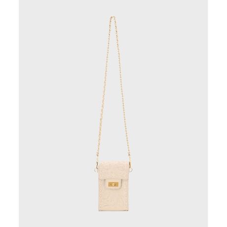 ハンドステッチを施したミニショルダー。内側に仕切りを付け、中身が取りだしやすい構造で使い勝手良く仕上げました。柄を活かした上質な牛革に、レザーを巻きつけたゴールドのチェーンストラップが品の良いアクセントに。身軽なお出かけに便利なサイズ感で、アクセサリー感覚で纏える一品です。