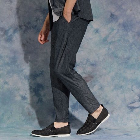 ウエストベルトのに平ゴムを入れたイージーパンツ仕様のジョッパーズ風パンツ。腰廻りにゆとりを出した少し深めの股上と膝下から裾口にかけての吸いつく様なテーパードシルエットになっています。股下部分に運動分量を入れて動きやすさにも気を使ったパンツです。同素材で半袖シャツ「メーカー品番5265-8102」を展開しておりますので、セットアップでのスタイリングもおすすめです。
