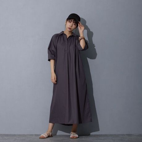 スキッパータイプのワンピースはさらっと一枚で羽織れる楽チンアイテム。