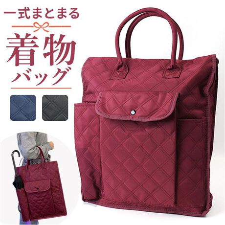 【着物一式をまとめて持ち運び!】大切な着物や帯、小物などをコンパクトに持ち運びできる「祇園京舞 着物収納バッグ」【大きく開くファスナー仕様】開口部は180度大きく開くファスナー仕様。中身が確認しやすく、出し入れもラクラク。【不織布ケースで通気性◎】内側のファスナーを開ければ通気性の良い不織布ケース付き。箪笥から出してそのまま収納OK【たっぷりマチ付き大容量】マチがしっかりあるので見た目以上の収納力!必要な小物類もポケットに分けて収納可能。【汚れを気にせず入れられる!】フロントには折りたたみ傘や草履など汚れを気にせず入れられるポケット付き。【やわらかなキルティング生地】表面は手触りが良く、クッション性のあるキルティング生地を使用。軽量なのも嬉しい。【和服にも洋服にも合うデザイン】シンプルなデザインだから着付けのお稽古や冠婚葬祭など、電車での移動もラクラク。【ユニセックスで使える】年代や性別問わず使用でき、スーツやドレスなど旅行や出張の際の持ち運びにも便利!【ポケット仕様】内側:ファスナーポケット×1、オープンポケット×2前面:ボタン付きポケット×1、オープンポケット×2