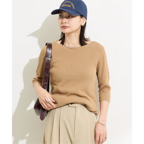 糸によりをかけてDRYタッチに仕上げた接触冷感のある夏に最適なハイゲージニット。今シーズンはRIBシリーズが新しくお目見え。インナーとしても1枚着としても着回し力のあるハーフスリーブプルオーバー。