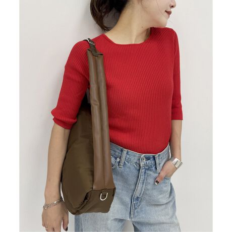 糸によりをかけてDRYタッチに仕上げた接触冷感のある夏に最適なハイゲージニット。今シーズンはRIBシリーズが新しくお目見え。インナーとしても1枚着としても着回し力のあるハーフスリーブプルオーバー。