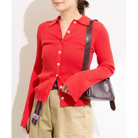 糸によりをかけてDRYタッチに仕上げた接触冷感のある夏に最適なハイゲージニットカーディガン。今シーズンはRIBシリーズが新しくお目見え。トレンドの襟付きカーディガンで1枚で羽織ってもサマになるのはもちろん、シャツとレイヤードしても今年らしいスタイリングが叶います。ライン拾いすぎない程よいフィット感で人気のワイドパンツともバランスよく着まわせて、ジャケットやコートの中にインしてもすっきり着ていただけます。