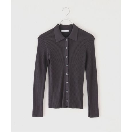 糸によりをかけてDRYタッチに仕上げた接触冷感のある夏に最適なハイゲージニットカーディガン。今シーズンはRIBシリーズが新しくお目見え。トレンドの襟付きカーディガンで1枚で羽織ってもサマになるのはもちろん、シャツとレイヤードしても今年らしいスタイリングが叶います。ライン拾いすぎない程よいフィット感で人気のワイドパンツともバランスよく着まわせて、ジャケットやコートの中にインしてもすっきり着ていただけます。