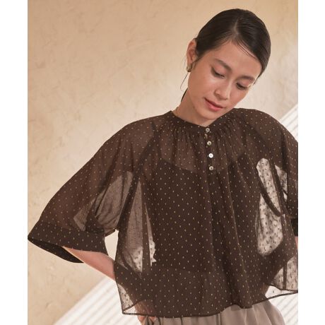 楊柳シフォンドットフレアブラウス-手洗い可-