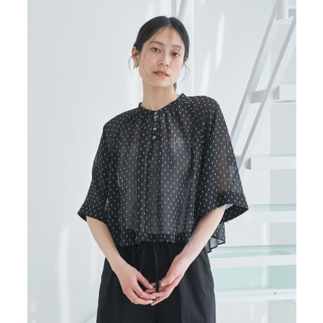 楊柳シフォンドットフレアブラウス-手洗い可-