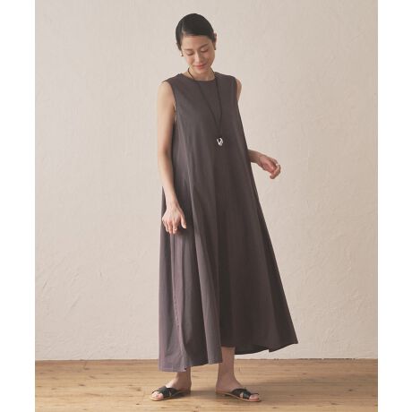 クルーネックノースリーブフレアワンピース-手洗い可-