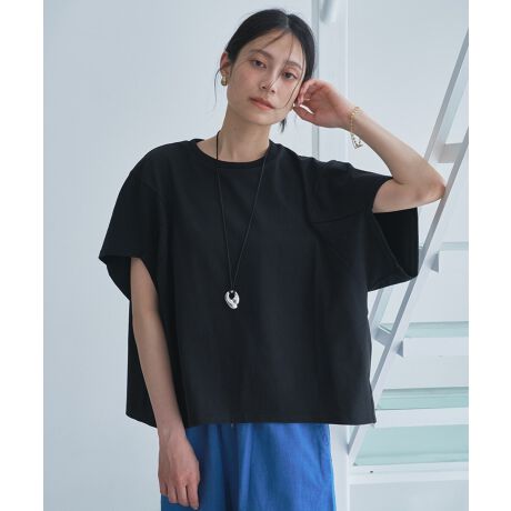 独特な袖口の切替によりニュアンス感のあるシルエットのトップス。