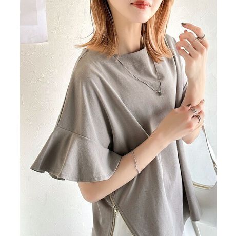 大人の抜け感を叶える、エレガントな袖フリル付きフレンチスリーブカットソー。