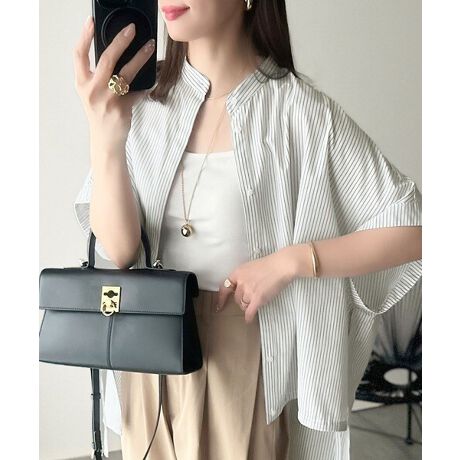 すっきりとした印象のバンドカラーが顔まわりを引き立て、洗練された雰囲気に。