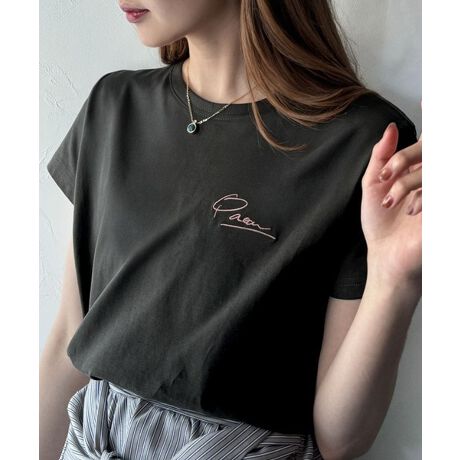シンプルなデザインながらも、ロゴ刺繍がポイントの半袖Tシャツ。