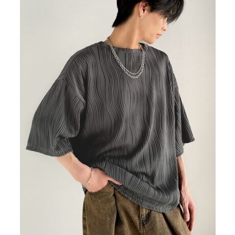 流れるウェーブ柄が、シンプルなのにお洒落見えを叶える半袖Tシャツ。