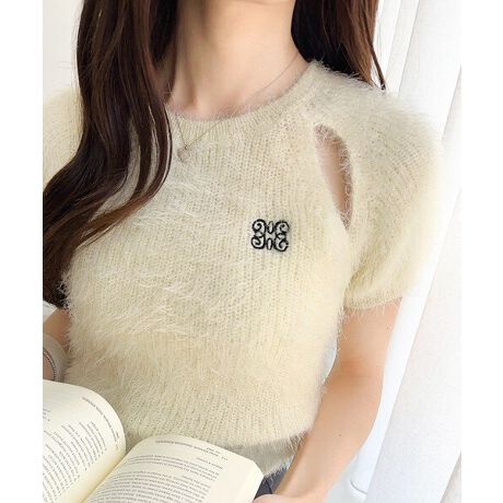 マルイウェブチャネル   /   クラシカルエルフ   /   トップス   /   ニット・セーター   /   【mily bilet】ふんわり大人ガーリーな雰囲気。胸刺繍肩スリット半袖シャギーニットプルオーバー