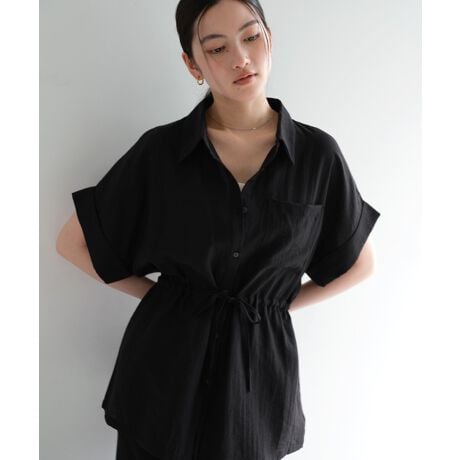 リネン ブレンド ウエスト リボン シアー シャツ ブラウス