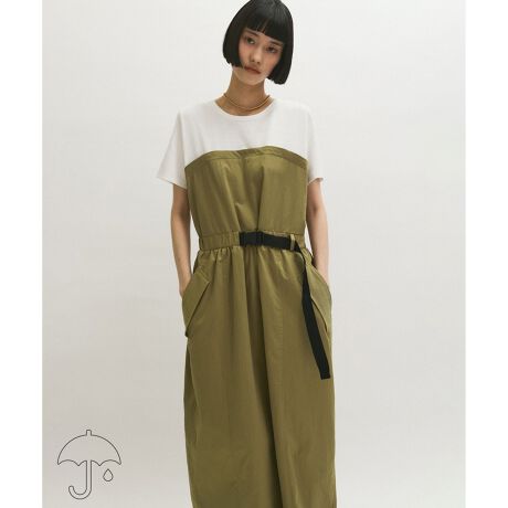 ウエストにつけたナイロンベルトやフラップポケットなどスポーティなデザインを残しながらも、ミニマルでモードに仕上げたワンピース。