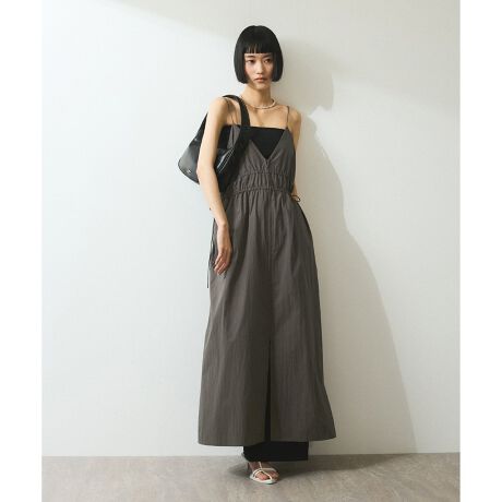 ギャザーディティールとカジュアル感のある素材のコントラストもポイントのキャミソールワンピース。