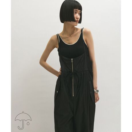 またフロントZIPをウエストまで開けてウエストのコードをぎゅっとリボン結びで縛り、トップスを折り返せば、ワークパンツとしても着用が可能。