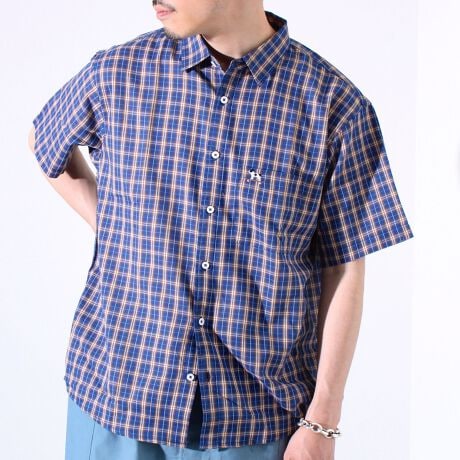 【GLOSTER/グロスター】フレンチブルドッグ刺繍 空浮着 ショートスリーブシャツ