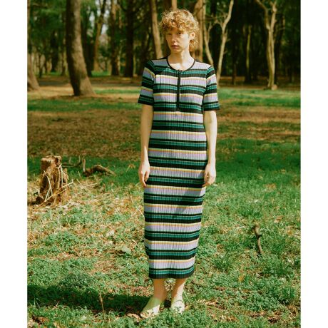 タイトめなストレートシルエットで、フロントのハーフZIPデザインがポイントのニットワンピース。