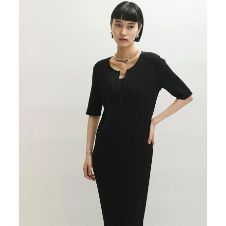 タイトめなストレートシルエットで、フロントのハーフZIPデザインがポイントのニットワンピース。