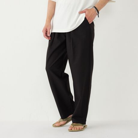 リネンと機能素材COOLMAX(R)をブレンドした、オリジナルファブリックで仕上げたイージーパンツ。