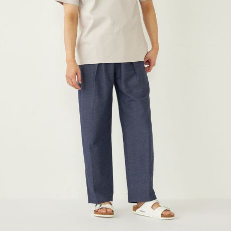 リネンと機能素材COOLMAX(R)をブレンドした、オリジナルファブリックで仕上げたイージーパンツ。