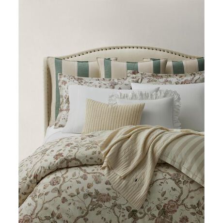 クリーム色と落ち着いたピンクの控えめなパレットを採用したElsieデュベカバー。表面にはエレガントなジャコビアンフローラル、裏面にはトーナルなカバナストライプをプリントしたアイテム。コットンを使用して丁寧に仕立てた朱子織で、シルクのようになめらかな手触りと流れるようなドレープを実現・300スレッドカウントのコットン朱子織 / コードトリム付きのフランジ / 隠しボタン留め / 内側の隅にひも付き・Ralph Laurenのコットン製品を選ぶことで、環境の保護と修復に努めながら、コットン業界が今後も成長を続けられるように支援するBetter Cotton(TM)ミッションへのRalph Laurenの取り組みをサポートすることになります・本商品は物質収支方式に則って材料を調達しているため、全ての製品にBetter Cotton(TM)が含まれない可能性があります。※商品の色味は、光のあたり具合など諸条件により色感が多少異なって見える場合がございますので予めご了承下さい。※注意:柄の配置は、商品によって異なる場合がございます。※こちらの商品は羽毛布団カバーです。※規格はサイズデータをご確認ください。 【素材】・100%、綿 【生産国】バーレーン【採寸】セミダブル羽毛布団カバー:170cm x 210cm