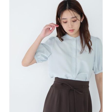袖の切り替えを利用して膨らみを出したパフスリーブデザインのブラウスです。貝調の配色ボタンをポイントに、襟はバンドカラーデザインで、ONにもOFFスタイルにも使えるきちんと見えするデザイン。スカートやパンツ合わせはもちろん、ジレやジャンスカとのレイヤードにも着ていただけます。<素材>サラリとしたドライタッチで麻調のチラチラした見え方が爽やかな印象の素材を使用。優しいハリ感があり袖や衿の形をキレイに引き立てる素材感です。<詳細>仕様・前ボタン裏地・なし透け感・ややあり / 光沢・なし / 伸縮性・なし 生地の厚さ・普通※モデルの着用画像の場合、光の当たり具合により、実際の色味と異なって見えることがございます。色味は、商品単体の画像をご参照ください。