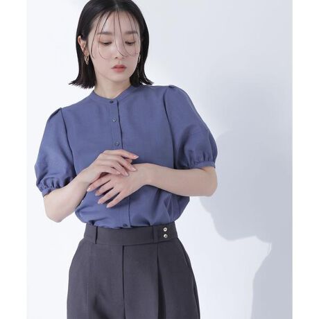 袖の切り替えを利用して膨らみを出したパフスリーブデザインのブラウスです。貝調の配色ボタンをポイントに、襟はバンドカラーデザインで、ONにもOFFスタイルにも使えるきちんと見えするデザイン。スカートやパンツ合わせはもちろん、ジレやジャンスカとのレイヤードにも着ていただけます。<素材>サラリとしたドライタッチで麻調のチラチラした見え方が爽やかな印象の素材を使用。優しいハリ感があり袖や衿の形をキレイに引き立てる素材感です。<詳細>仕様・前ボタン裏地・なし透け感・ややあり / 光沢・なし / 伸縮性・なし 生地の厚さ・普通※モデルの着用画像の場合、光の当たり具合により、実際の色味と異なって見えることがございます。色味は、商品単体の画像をご参照ください。
