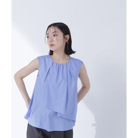 流れるような大きめのドレープデザインがポイントのブラウスです。襟はギャザーとタックを入れており、顔まわりを華やかに見せてくれるデザイン。ドレープディテールを活かして、アウトスタイルがおすすめです。<素材>ややハリ感のある生地を使用。クリアで洗練された印象の生地です。<詳細>仕様・後ろボタン裏地・なし透け感・なし / 光沢・ややあり / 伸縮性・なし 生地の厚さ・普通※モデルの着用画像の場合、光の当たり具合により、実際の色味と異なって見えることがございます。色味は、商品単体の画像をご参照ください。