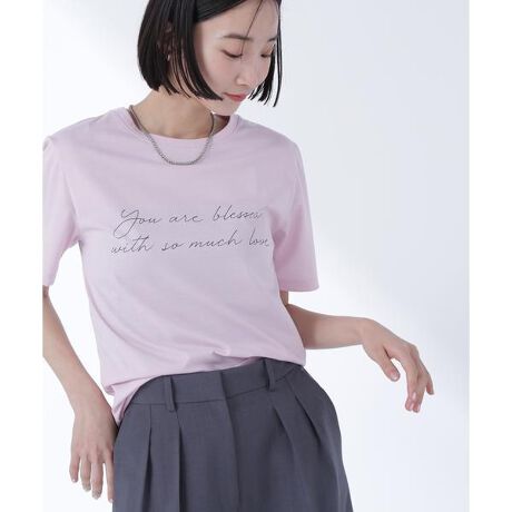 メッセージ性のある筆記体のロゴがキャッチーなTシャツ。華奢なラインながら大きめのロゴなので、一枚でもこなれた印象に見せてくれます。シルエットはコンパクトなので、ジャケットやブルゾンのインナーにもちょうど良いサイズ感です。<素材>クリアな表面感のプレーティング天竺を使用。サラッとした肌触りでキレイ目な印象のカットソー素材です。<詳細>仕様・開閉なし裏地・なし透け感・なし / 光沢・なし / 伸縮性・あり生地の厚さ・普通※モデルの着用画像の場合、光の当たり具合により、実際の色味と異なって見えることがございます。色味は、商品単体の画像をご参照ください。