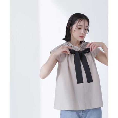 襟の大きめフリルとリボンボウタイが一枚で着映える華やかなブラウス。フロントはグログランリボンをアクセントに、ボリュームのある襟デザインが顔まわりを華やかに見せてくれます。フォルム感のあるゆったりとしたシルエットに、甘めのディテールで抜け感をプラス。ジレやジャケットのインナーとして着ても、スタイリングを軽やかに仕上げてくれます。<素材>程よいハリ感のあるブロード素材を使用。キレイな表面感がポイントです。<詳細>仕様・開閉なし裏地・なし透け感・なし / 光沢・なし / 伸縮性・なし生地の厚さ・普通※モデルの着用画像の場合、光の当たり具合により、実際の色味と異なって見えることがございます。色味は、商品単体の画像をご参照ください。