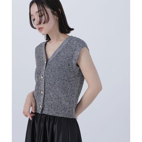 コロンとしたゴールドカラーの釦が今年らしいポイントのニットベスト。夏は1枚でノースリーブとして着たり、インナーをレイヤードすれば長く着ていただけます。キレイめなボトムスやカジュアルなデニムパンツにも着回せるデザイン。今年はモノトーンMIXカラーが新鮮でおすすめです。<素材>コットンタッチな糸で畦編みした少し肉感ある編地です。<詳細>仕様・前ボタン裏地・なし透け感・なし / 光沢・なし / 伸縮性・あり 生地の厚さ・普通※モデルの着用画像の場合、光の当たり具合により、実際の色味と異なって見えることがございます。色味は、商品単体の画像をご参照ください。