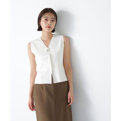 胸元の飾りダブルポケットやフロントボタンがアクセントになるニットベスト。プルオーバー風に着ることが出来、Vネックデザインで涼しく着ていただけます。一番下までボタンを付けていないため、スリットのように見せながら抜け感のあるアウトスタイルが楽しめます。<詳細>仕様・前ボタン裏地・なし透け感・なし / 光沢・なし / 伸縮性・あり生地の厚さ・普通※モデルの着用画像の場合、光の当たり具合により、実際の色味と異なって見えることがございます。色味は、商品単体の画像をご参照ください。